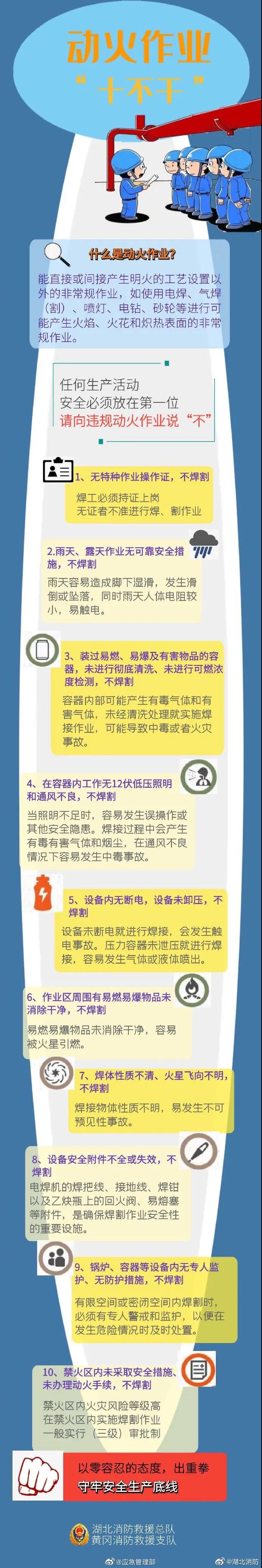 動火作業在各行各業都非常普遍,在工業生產、建筑施工、交通運輸等行業領域的易燃易爆場所,動火作業的危險性更高,是事故防范的重點環節。任何生產活動,安全必須放在第一位!請向違規動火作業說“不”!