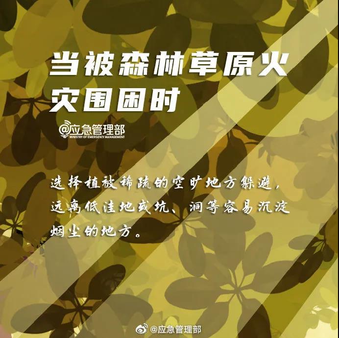 森林火災突發性強、破壞性大、撲救極為困難,大火可能造成慘重的人員傷亡和財產損失。當遭遇森林火災時,如何正確逃生?戳圖了解↓
