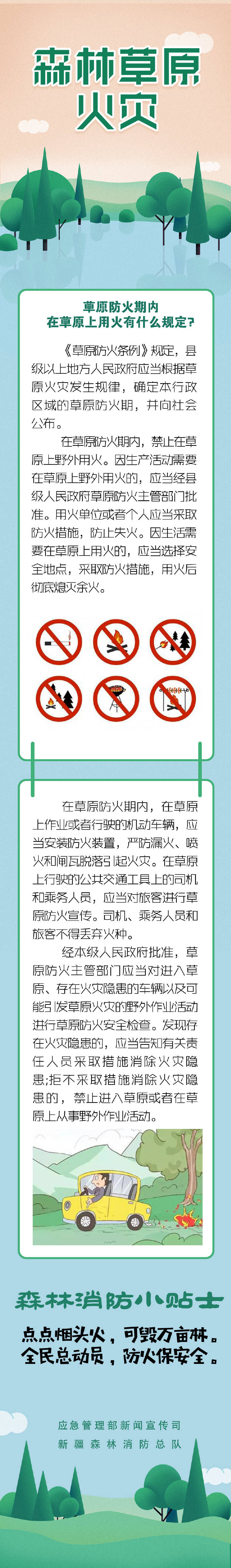 當下,正值草原防火的關鍵期,嚴禁私自在草原上野外用火。如果因生產活動需要在草原上野外用火的,需要經過哪個部門批準?用火過程中需要注意些什么?在草原上作業或行駛的機動車輛又該注意些什么?一起讀圖了解。