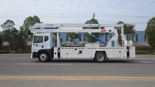 國六東風(fēng)多利卡22米高空作業(yè)車(JDF5110JGK22E6),采用東風(fēng)汽車股份有限公司生產(chǎn)的EQ1165LJ9CDE底盤改裝而成,搭配國六東風(fēng)康明斯B6.2NS6B210柴油發(fā)動(dòng)機(jī),200馬力,六缸,功率為154KW。駕駛室為平頭單排,可乘坐3人,內(nèi)飾和儀表臺(tái)提檔升級(jí),更舒適和美觀。該車最大作業(yè)高度22m,最大作業(yè)幅度9.6m;臂架形式為三節(jié)折臂, 支腿型式為前后H型。
