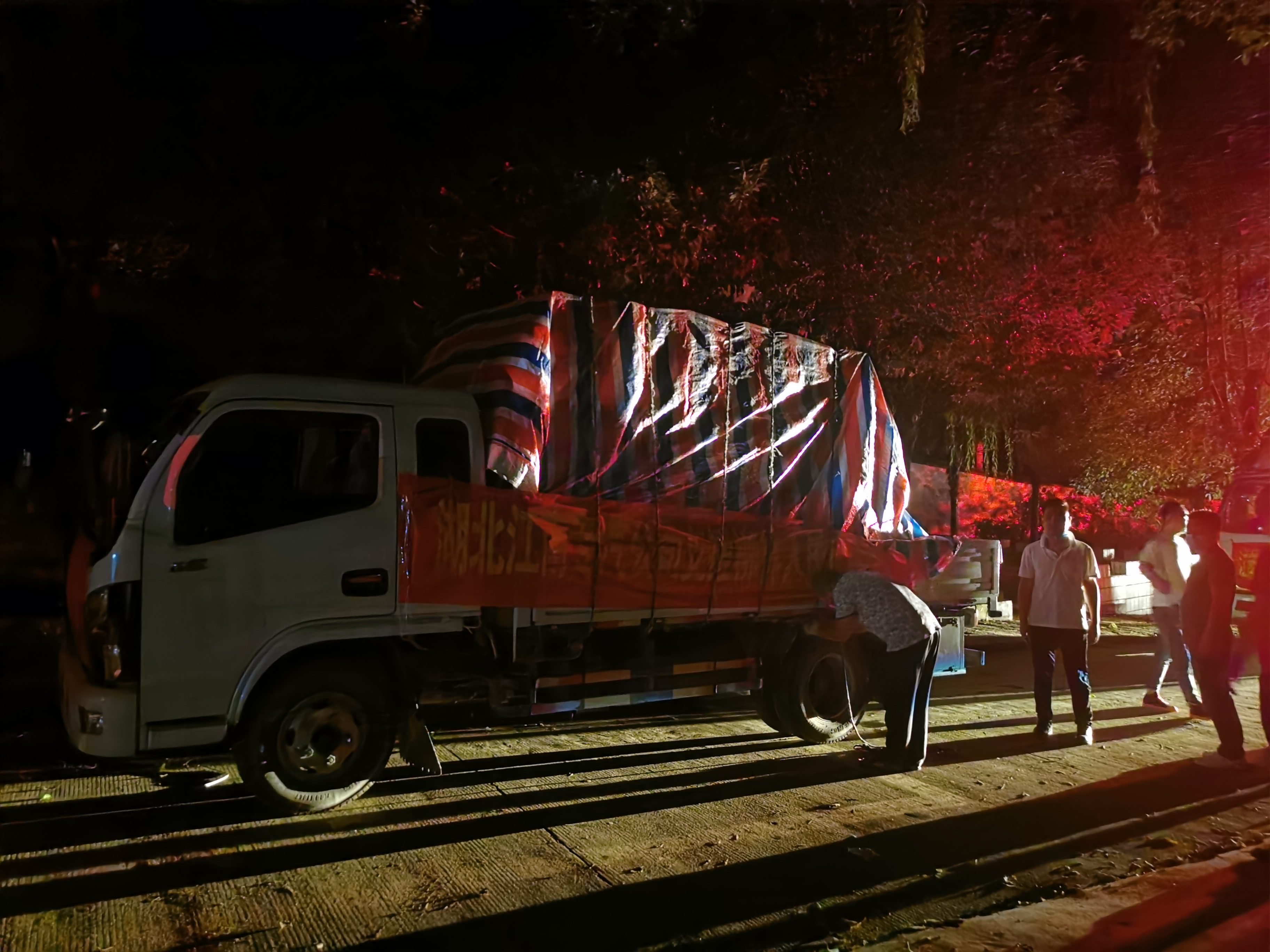 12日晚11點(diǎn)湖北江南抗洪救災(zāi)物資順利運(yùn)抵柳林鎮(zhèn)中心學(xué)校。