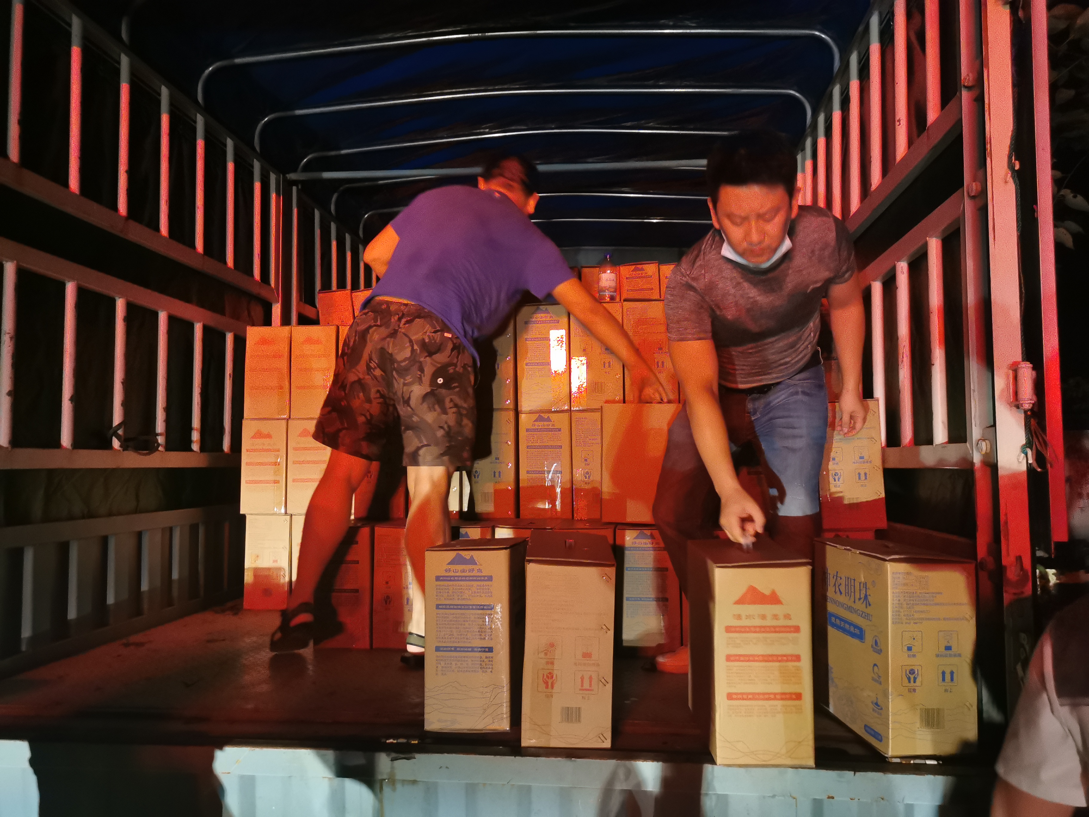 時(shí)間就是希望,效率就是勝利!剛進(jìn)入災(zāi)區(qū),湖北江南人就立刻投入到了救災(zāi)中。在與時(shí)間的賽跑中,豆大的汗珠、滿頭的濕發(fā)、通紅的臉龐、濕漉漉的衣服,這些特寫都繪刻成了每個(gè)湖北江南人堅(jiān)毅、果敢的人物素描。沒有一個(gè)人喊苦喊累,沒有一個(gè)人要求休息,大家都使出渾身力氣,只愿能更快一點(diǎn)為災(zāi)區(qū)群眾送去溫暖。經(jīng)過大家相互配合、相互協(xié)作、相互鼓勁,全部物質(zhì)于13日凌晨零點(diǎn)30分裝卸到指定地點(diǎn)。