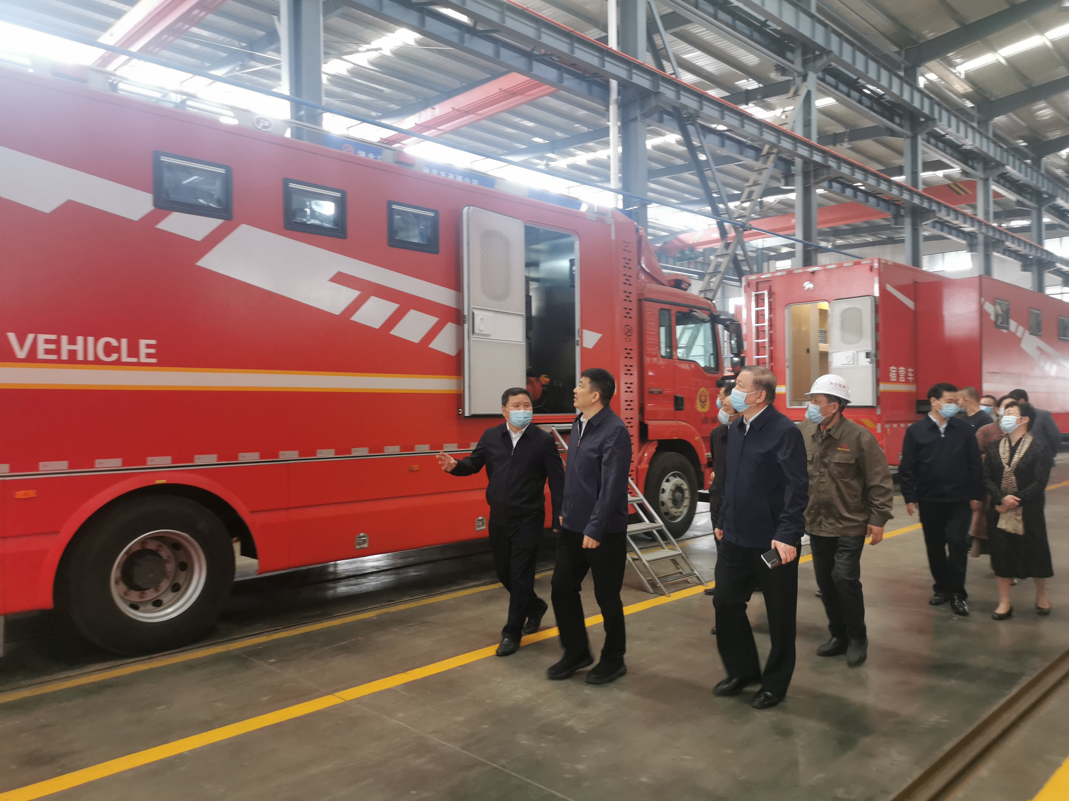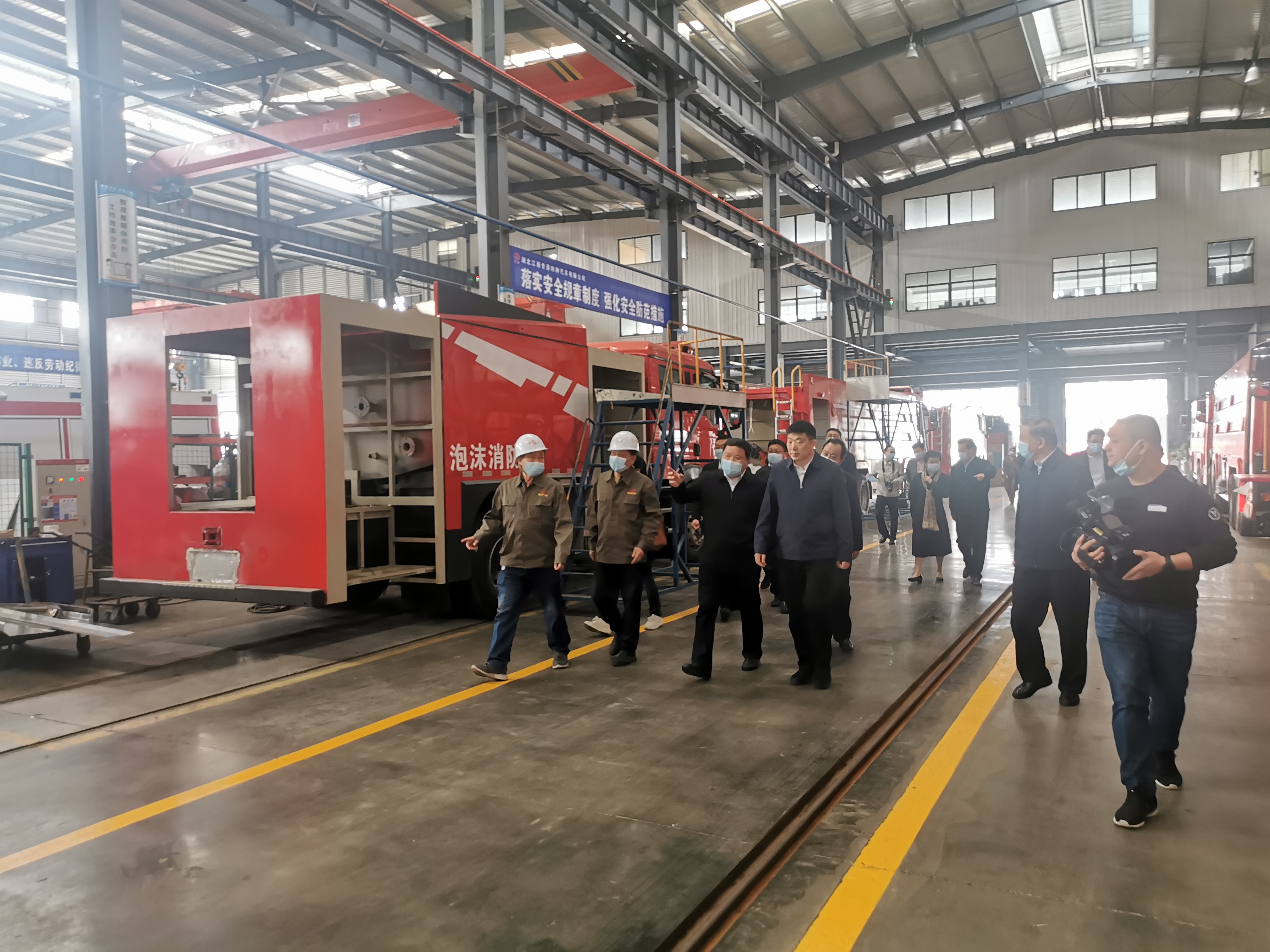 周先旺副主席一行參觀了公司消防車車間及應急特種車車間,總經理甘子林就公司經營發展情況、公司未來發展規劃等方面做了詳細介紹。