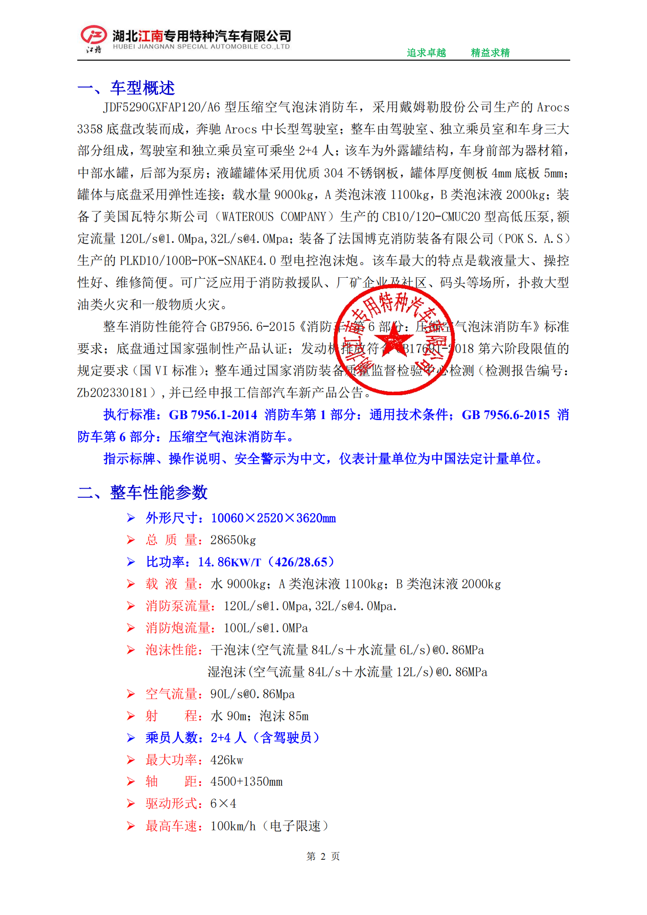 江特牌JDF5290GXFAP120/A6型壓縮空氣泡沫消防車